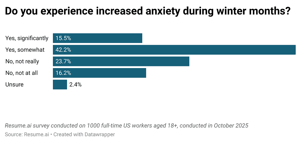Recognizing this behavior, in October 2025, experts at Resume.ai ran a survey of over 1,000 full-time office workers in the U.S. and studied how reduced daylight in the winter months and workloads affect professionals.